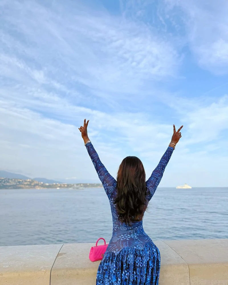 A dreamy fusion of edge and elegance, the Blue Floral Long Sleeve Maxi Dress brings artful flair to occasion wear. Crafted from sheer blue mesh fabric with a striking graffiti-style digital print, this piece features delicate long sleeves, a flattering fitted waist, and a dramatic pleated hem that moves with effortless grace. The wave-shaped seam at the skirt adds sculptural depth, making it a true statement piece.
