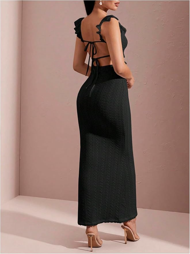 Crochet Ruffle Sleeveless Backless Bodycon Dresses