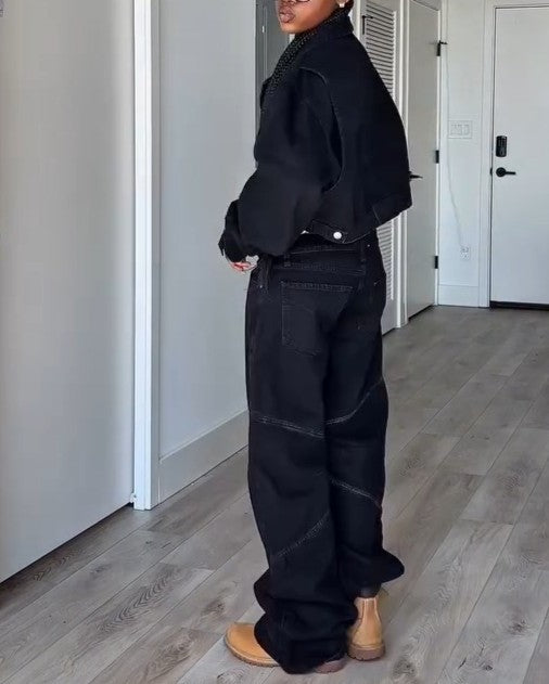 Cropped Denim Jacket + Low-Rise Wide-Leg Jeans