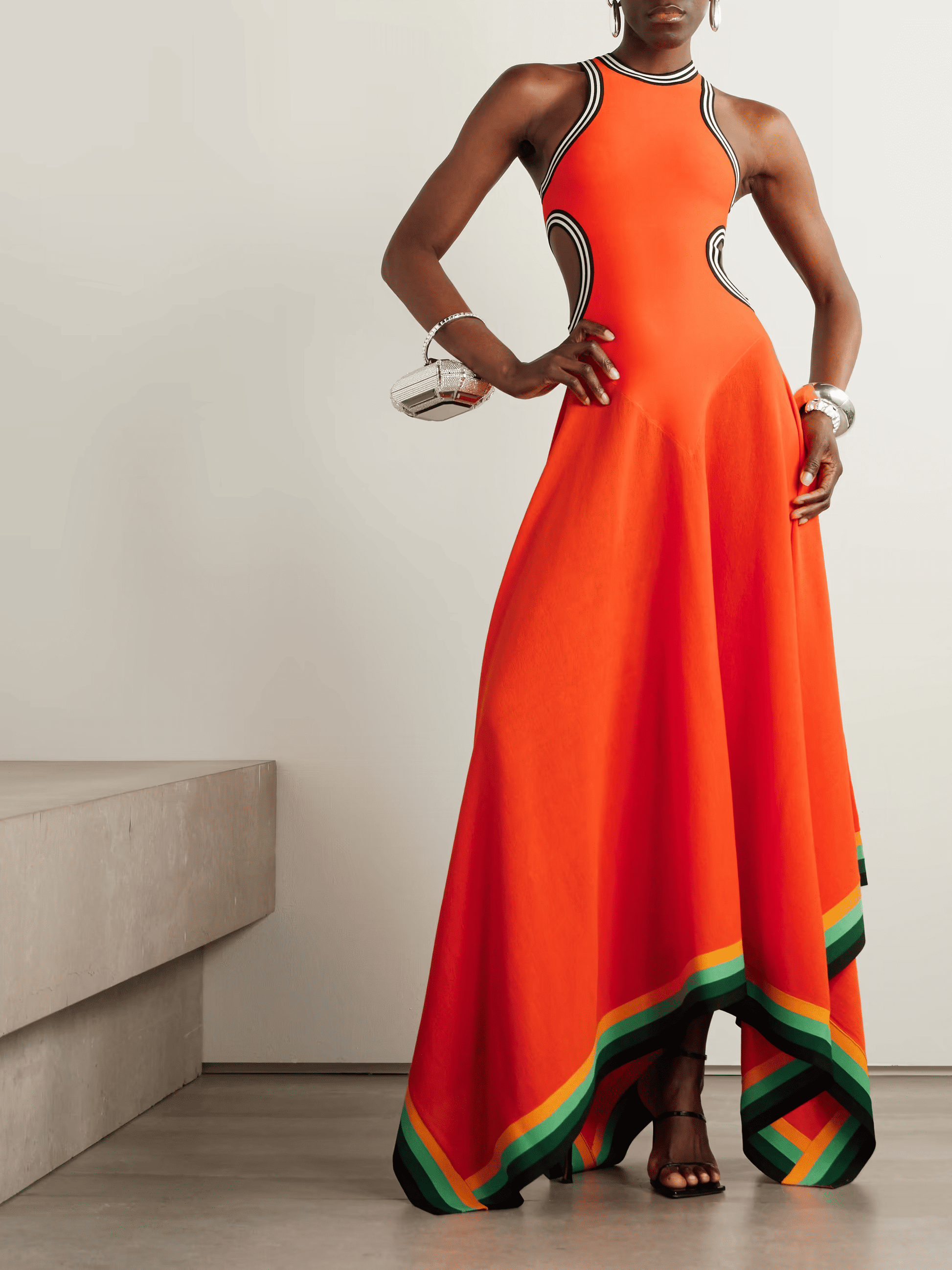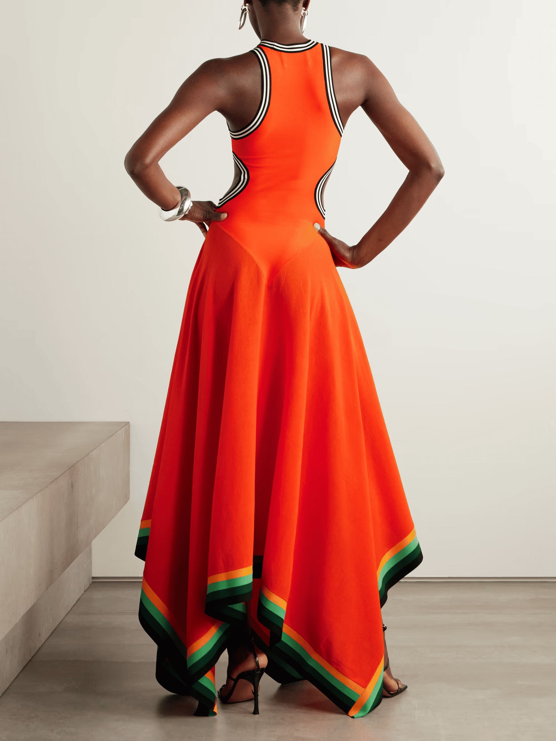 Cutout Striped Cotton-Blend Dress