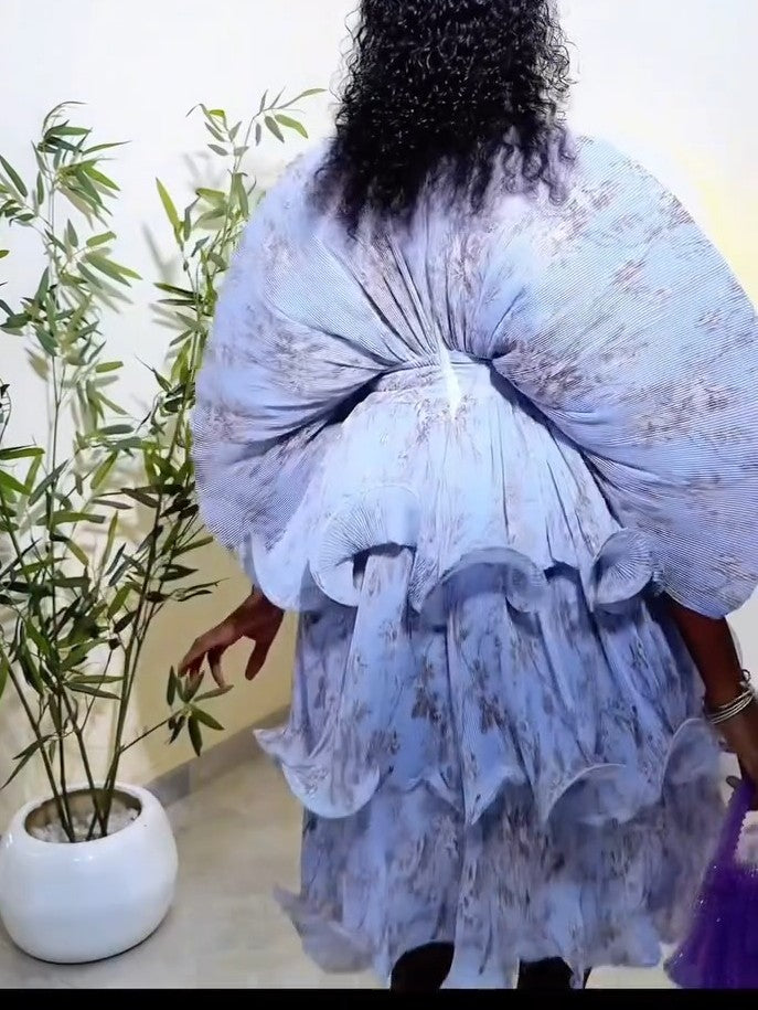 It’s a statement. A sculpture. A celebration of feminine power and architectural grace.Crafted for the woman who doesn’t just enter the room — she redefines it.With layered precision and blooming pleats, this piece is the embodiment of bold elegance.We don’t just design clothes.We build legacies, stitch confidence, and shape silhouettes that speak long after you’ve left.For the soft who is also strong.