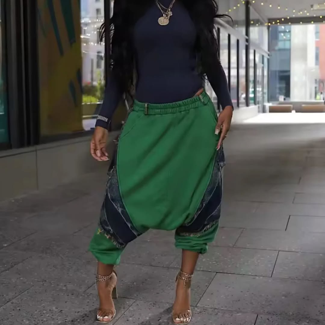 Mid Waist Casual Pocket Patchwork Harem Denim Jeans