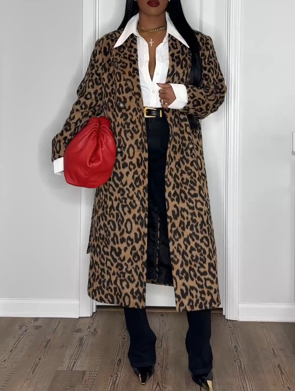 Oversized maxi coat in leopard print