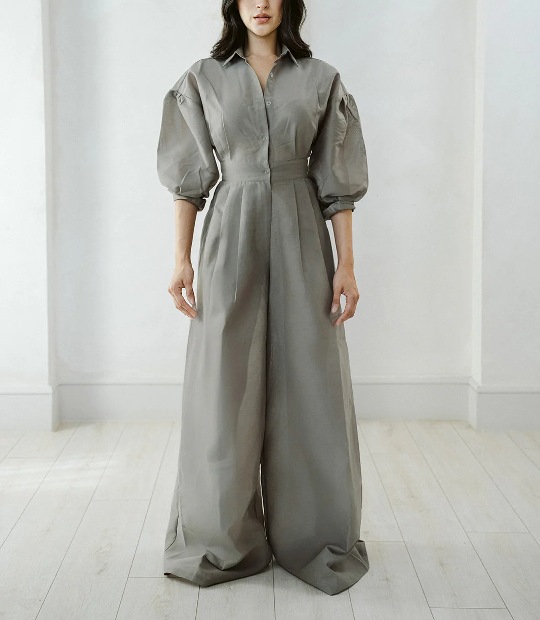We love a sheer moment! Our organza jumpsuits have quickly become a client favorite and we think that is because of the structured yet soft silhouette. Dress this up with your highest heel and chunky jewelry or simply dress it down with a sneaks. Make this jumpsuit your own!