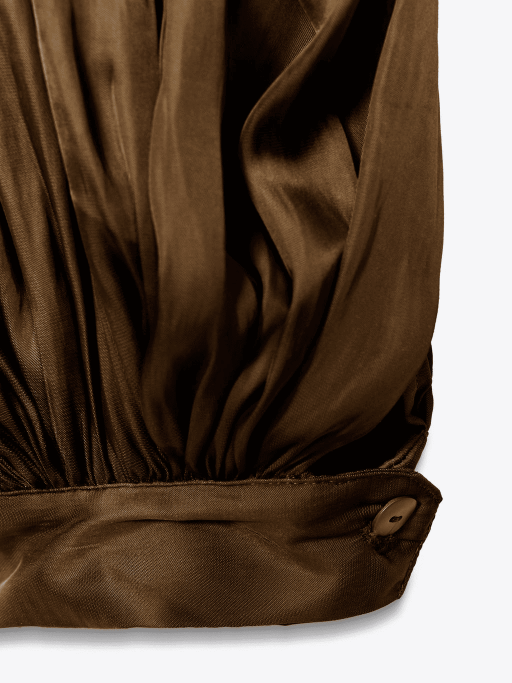 Long pleated jumpsuit with a round neckline and adjustable thin straps. Hidden side in-seam pockets. Puffed hem finished with elastic.