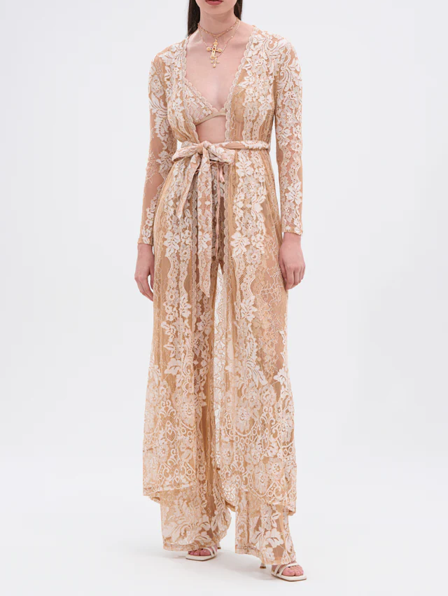 Made for paradise in The Simpltrend Label Resort Vibes Long Lace Cardigan. Crafted from a delicate, sheer floral lace fabric, this throw-on piece features scalloped trim hemlines, long sleeves, a coordinating self-tie waistband, and an open front. Complete with a flowing, longline silhouette,summery finish.